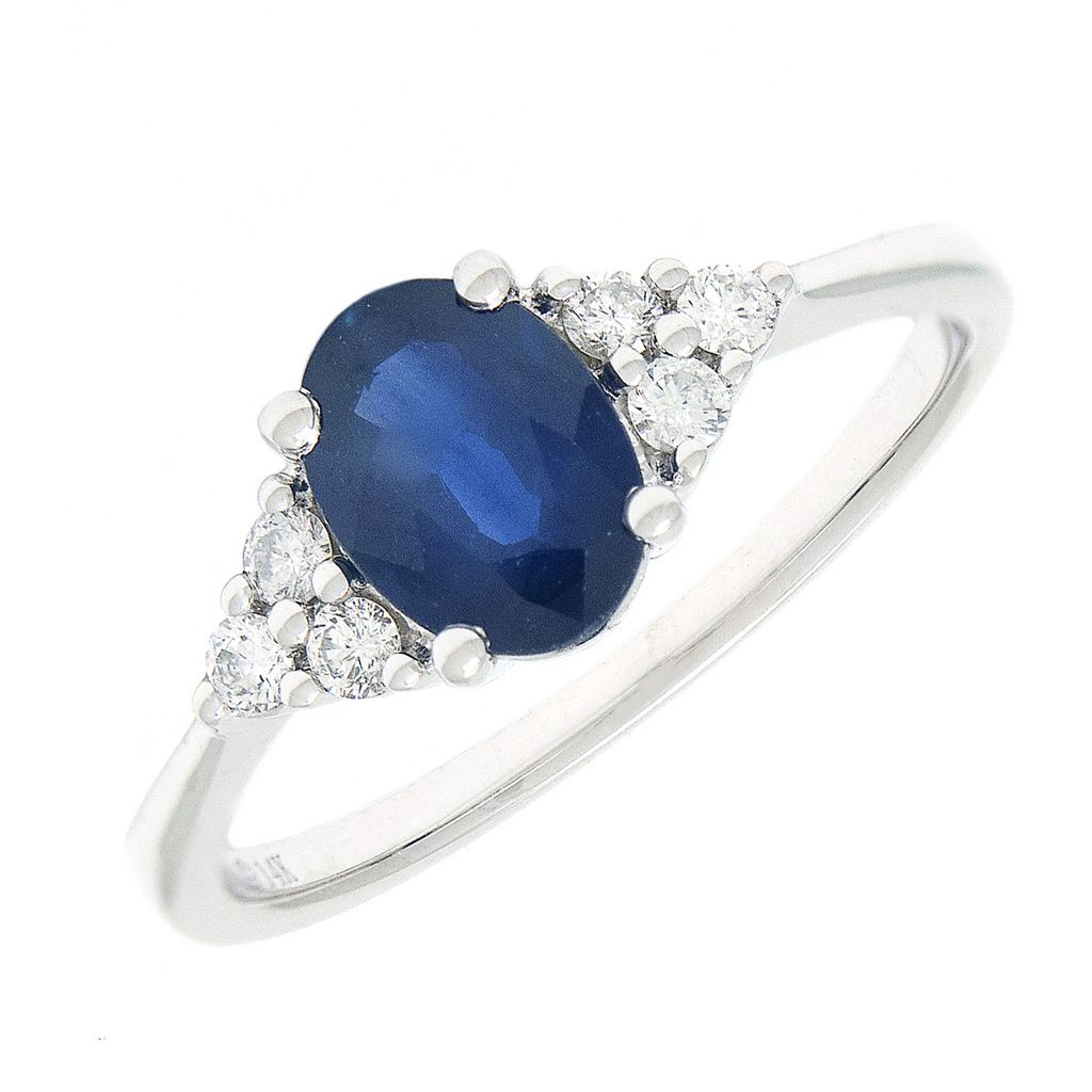 Anillo zafiro central 1,12 cts con 3 btes por lado, tot 0,17 cts