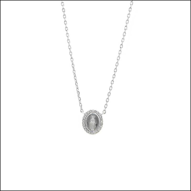 COLLAR PLATA MEDALLA VIRGEN MILAGROSA RODEADA BRILLANTES