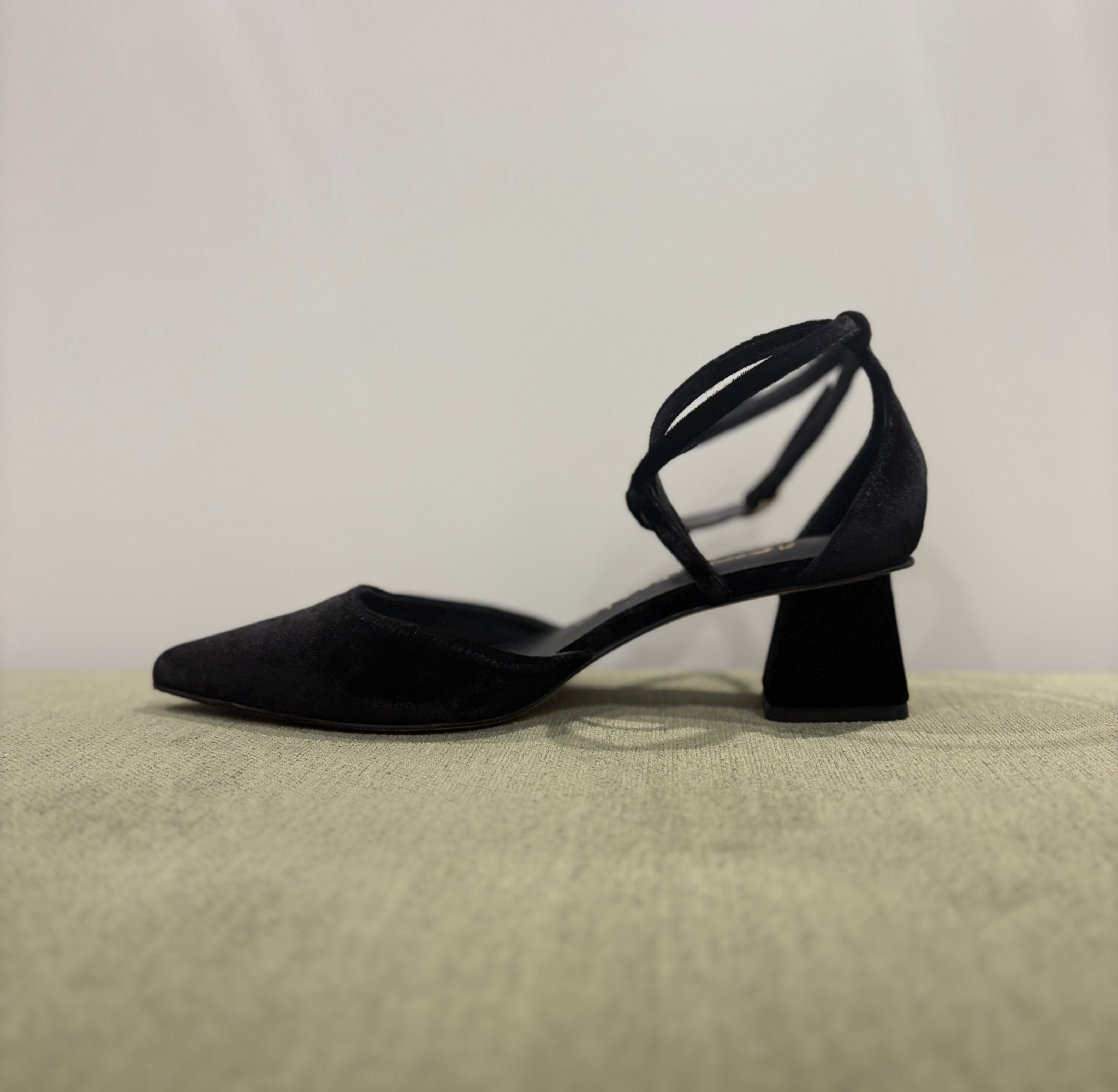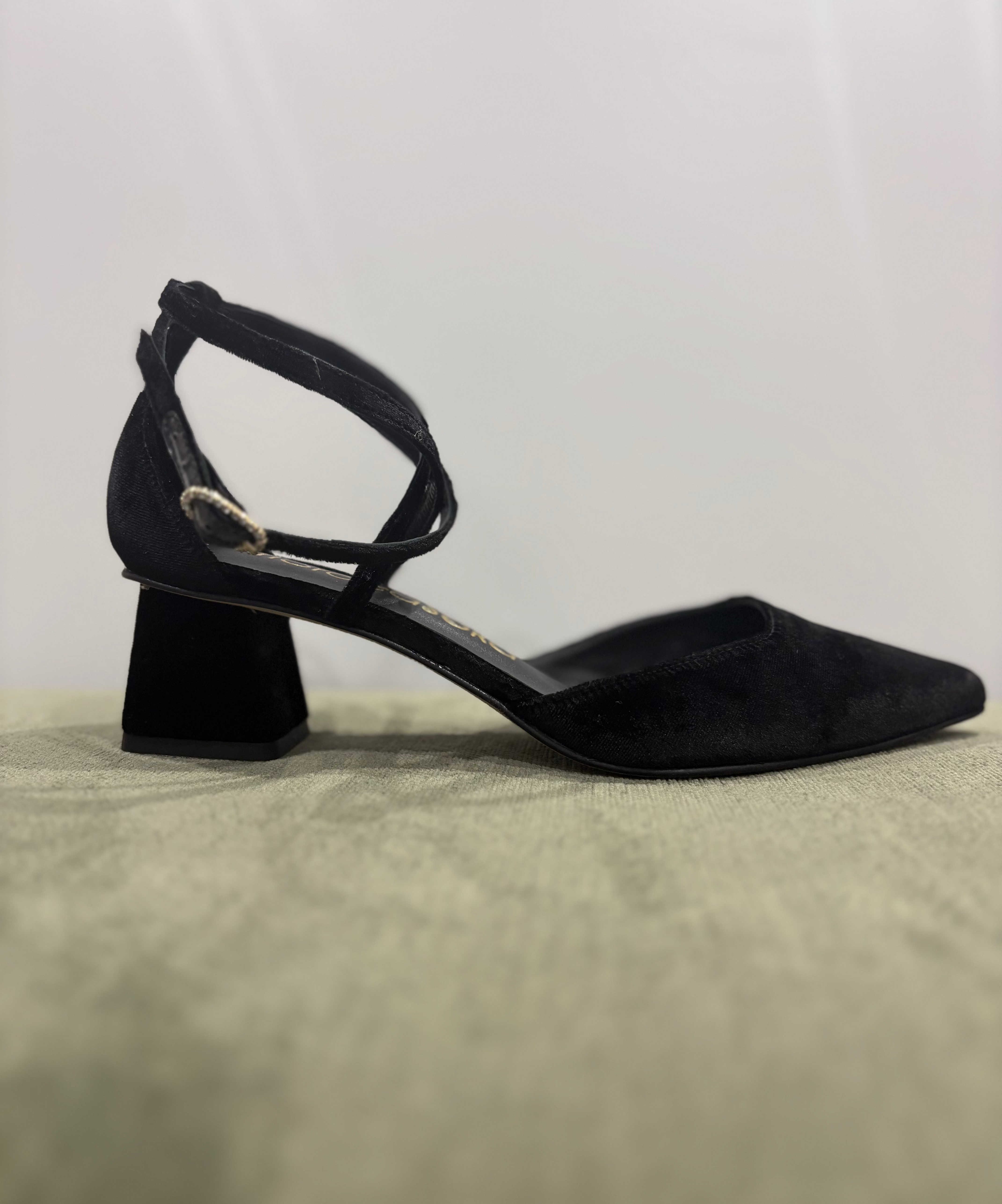 Zapatos de terciopelo de seda y tacón cómodo de 5 cm. Complemento perfecto para novias e invitadas.
