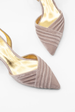 Zapato elegante cerrado de punta en terciopelo. Tacón bajo bloque cómodo y estable.