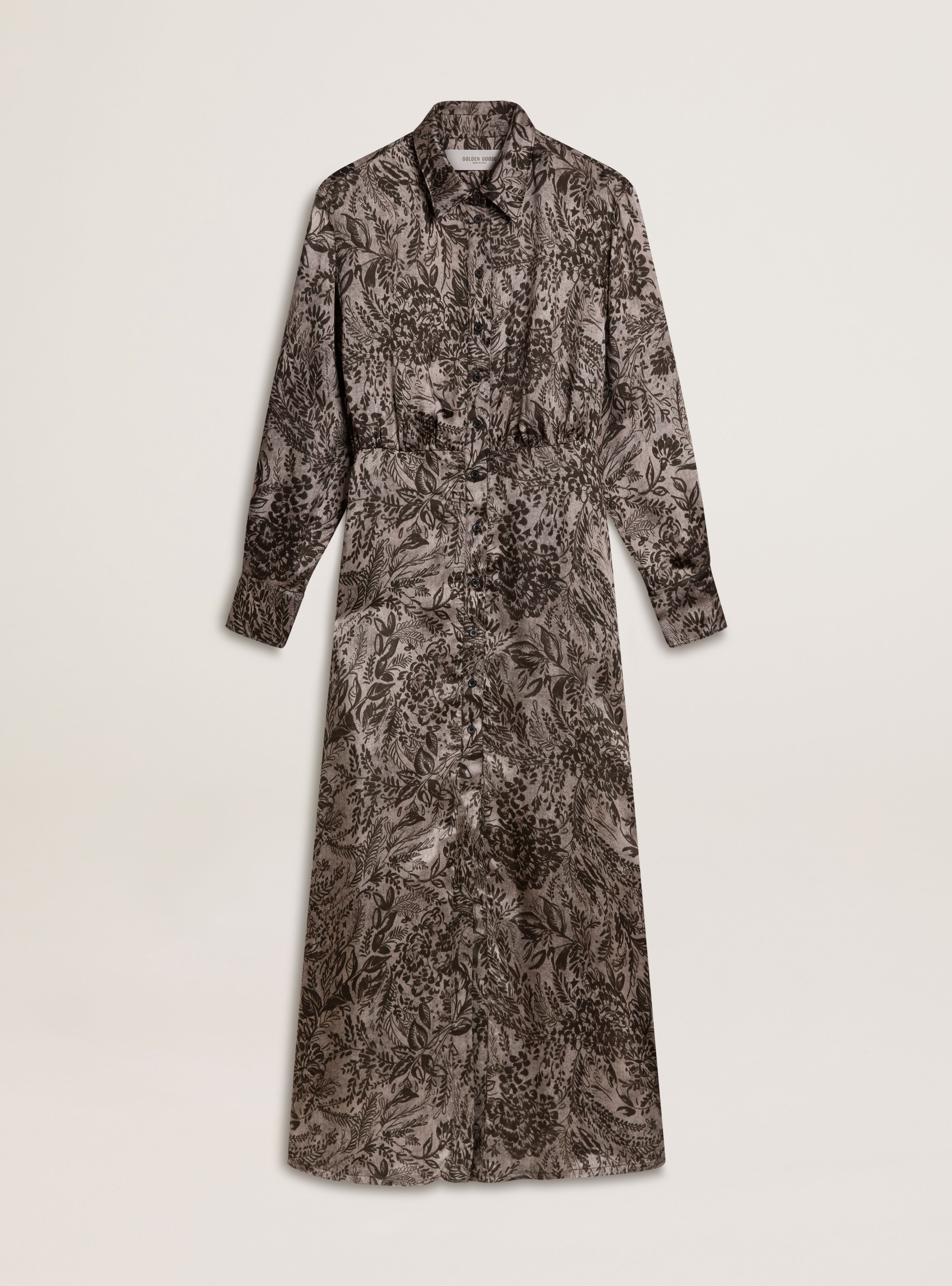 aumentar cantidad para GOLDEN W'S LONG SLEEVES ANKLE LENGTH CHEMISIER NAIKE VISCOSE TWILL TOILE DE JOUY ALL-OVER PRINTED