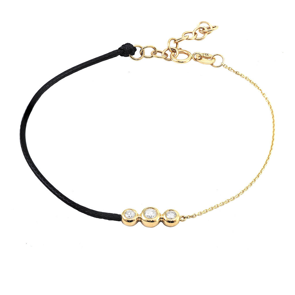 Pulsera mitad hilo mitad cadena, con 3 brillantes.